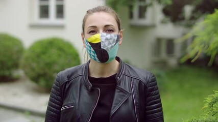young woman takes off her pantyhose staying in underwear and winks at camera