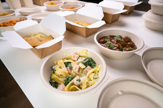 Selection Indian Take Away Dishes In Foil Containers