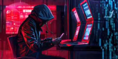 A digital interface showing an AI takeover of global systems, with glowing red alerts and intense data patterns creating a thrilling and fear-inducing scene.