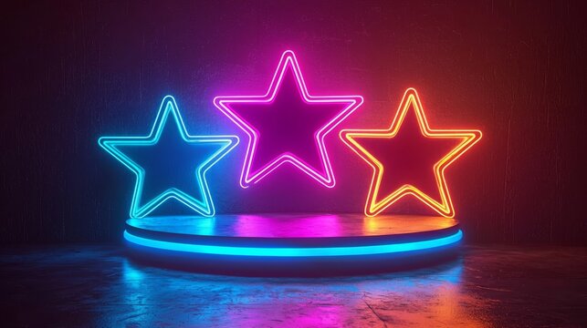 Concert and talent show neon banner. Copy space. Five stars hotel. Performance advertising. Vector stock illustration