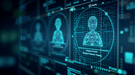 AI-powered recruitment system scanning potential job candidates, automation in HR and corporate hiring.
