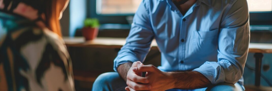 Couple during psychotherapy session, talk therapy good result, improvement of family relationships and behavior. Solving problems, family counseling to resolve conflicts, improving communication