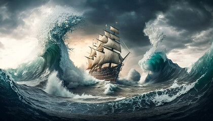 Majestic tall ship braving the tumultuous ocean storm