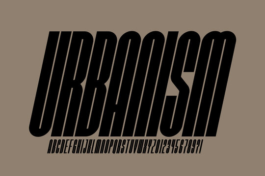 Condensed modern font, rounded narrow alphabet, letters and numbers