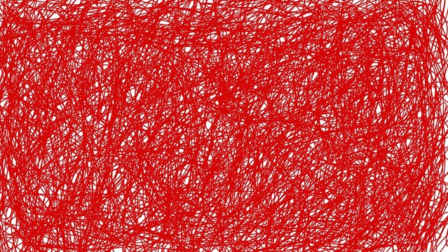 Dense red scribbles forming a chaotic, tangled pattern across a white background.
