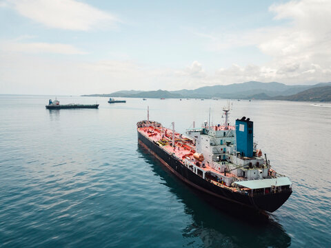 Indonesia, Bali, Aerial view of oil tanker