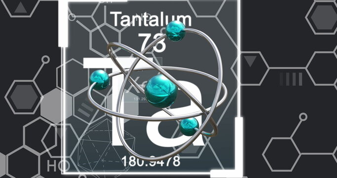 Close up of the Tantalum symbol in the periodic table, tech space environment.