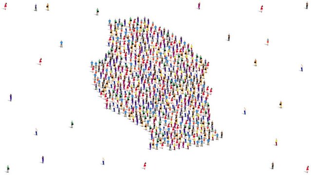 Tanzania Map A large group of people form to create a Tanzania map. 4K Video Animation.