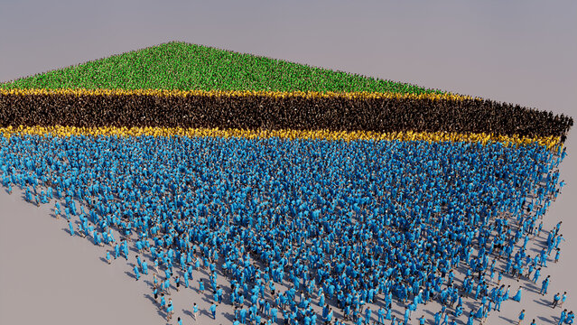 Tanzanian Banner Background, with People congregating to form the Flag of Tanzania.