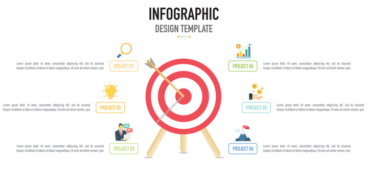 Dartboard Infographic With 6 Goal Options and Editable Text for Business Plans, Goals, Targets, and Website Design.