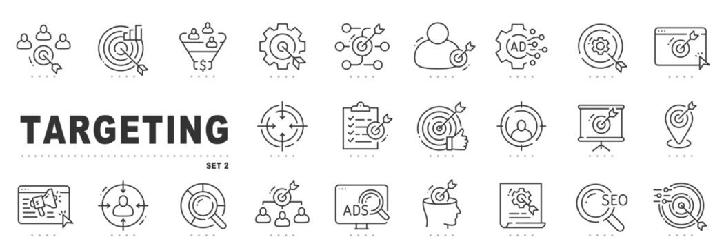 Business and marketing related editable stroke outline icons set isolated on white background flat vector illustration. Pixel perfect. 64 x 64.