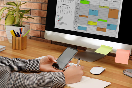 Schedule planning vector illustration. Character managing, prioritizing and delegating important work tasks. Characters planning work tasks, filling check list. Business and organization concept.
