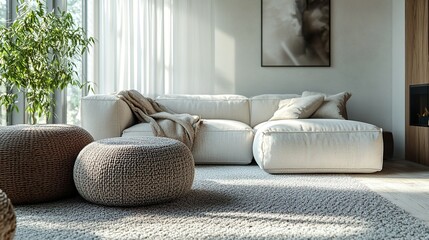 An elegant and refined living room setup featuring a white canvas backdrop, Sparse yet tastefully arranged minimalist furnishings, Classic minimalist style
