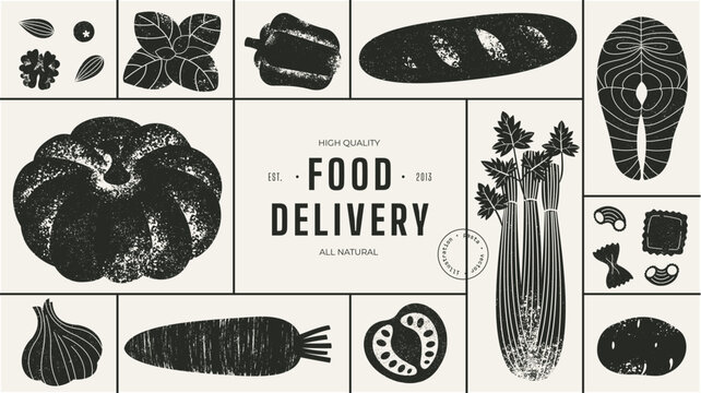 Healthy food horizontal design template. Organic vegetable collection. Vector illustration