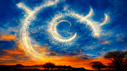Enchanting snowy landscape for festive holiday greeting