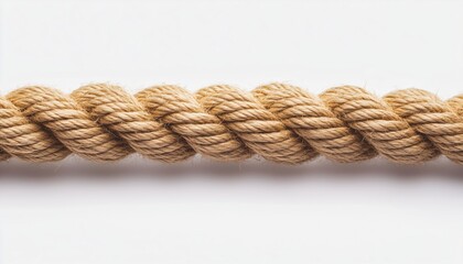 Detailed View Of Taut Rope On White Background. Photograph Captures The Intense Pressure And Tension Of The Pulled Rope. White Background Contrast.