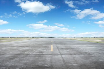 Rural Airfield Runway with a Breathtaking Blue Sky View for Transportation and Travel Concept:
