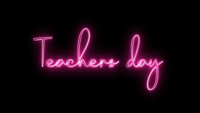 Teachers Day text font with neon light. Luminous and shimmering haze inside the letters of the text Teachers Day. Teachers Day neon sign.