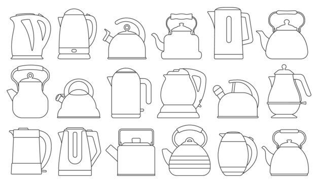 Kettle isolated outline set icon. Vector outline set icon electric teapot. Vector illustration kettle on white background.