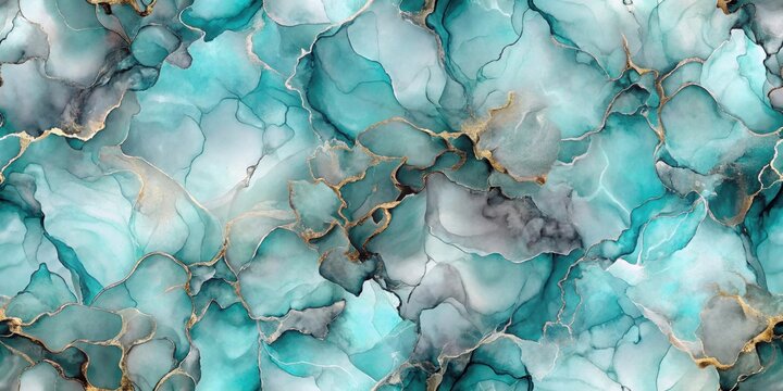 Abstract liquid fluid art painting background alcohol ink technique in teal blue green cool tone colors on white text space for banner, background.