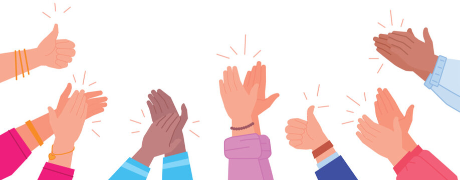 Happy people applauding and celebrating success vector illustration isolated on copy space white background, Focus on the joy and appreciation in their expressions, Successful business team clapping