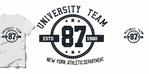 University team t shirt design with number eighty seven and established year