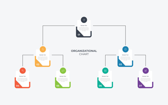 Business hierarchy organogram chart infographics. Corporate organizational structure graphic elements. Company organization branches template. Modern vector info graphic tree layout design.