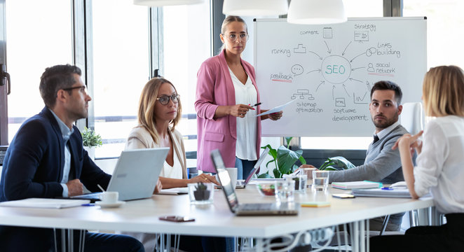 Business people discussing together in conference room during meeting at office.