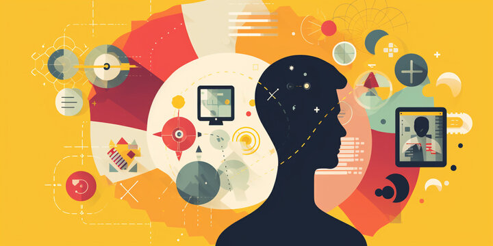 Inclusive language is symbolized by speech bubbles and vibrant cubes