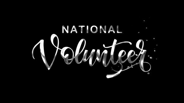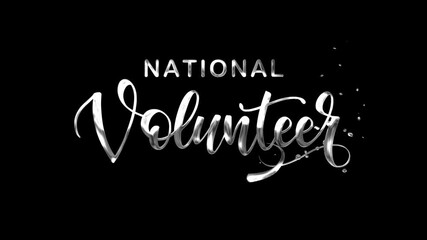 National volunteer week text animation on silver color. Suitable for social media posts, promotional materials, posters, and websites honoring volunteers.