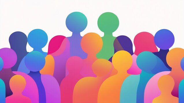 Abstract illustration of a crowd of colorful figures on a white background design concept art