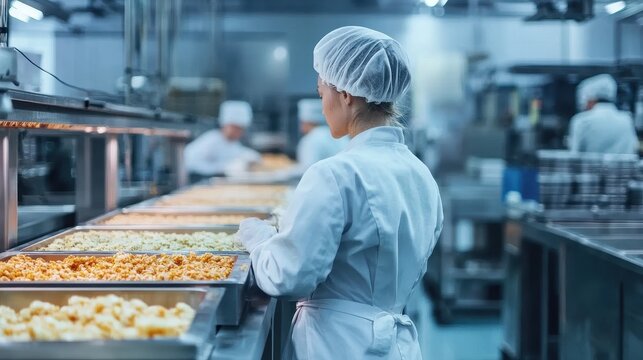 view on young attractive woman chefs in restaurant kitchen preparing dish.