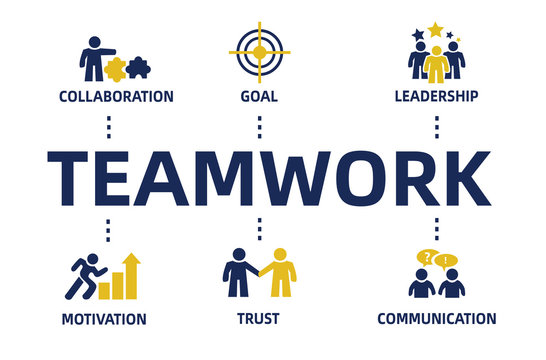 teamwork concept chart with icons and keywords