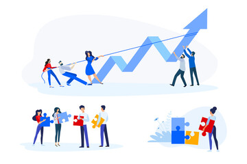 Flat design style illustrations of teamwork, business opportunities and solutions, success. Vector concepts for website banner, marketing material, business presentation, online advertising.