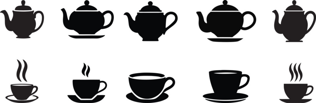 Electric kettle vector icon set. Hot tea symbol