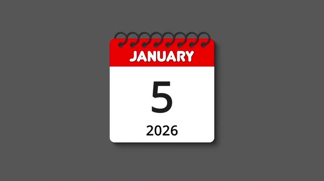 Monthly calendar animation with spiral ring coil binding, tear-off effect and realistic shadow for January 2026, perfect for time, schedule, event, and planning themes, transparent alpha channel BG