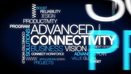 Advanced Connectivity blue words tag cloud text word title teaser conference business research high tech workforce reliability innovation connected application design advances