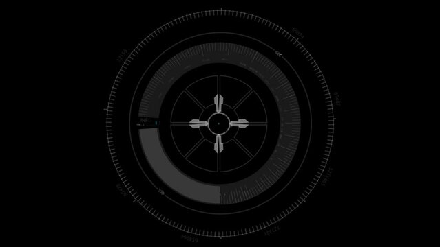 Scanning moving target shape with alpha channel White HUD Circle User interface on isolated black background.
