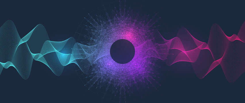 Party poster template. Music event poster design. Technology background abstract. Audio waves design.