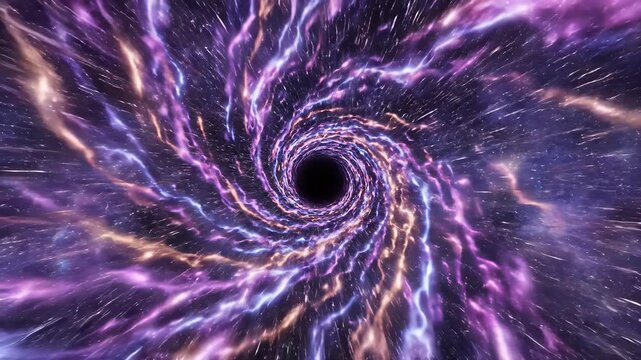 Cosmic black hole at galaxy center surrounded by swirling stars in abstract 4K UHD video, capturing the concept of energy and tunnel vision for projects related to innovation, technology.