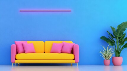Trendy and functional living room design for a youthful individual, incorporating tech-savvy elements, bold colors, and decor that highlights their unique personality