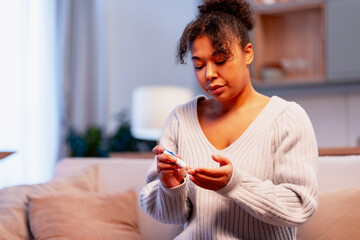 Woman reads document with concern in modern living room setting during the day