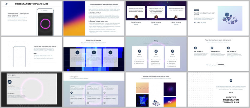 Minimal presentations, portfolio templates with abstract colorful infographics, minimalistic design futuristic vector backgrounds. Presentation slides for flyer, leaflet, brochure, cover, report.