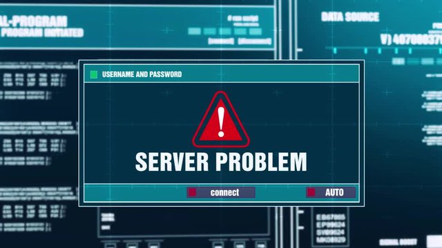 54. Server Problem Warning Notification Generated on Digital System Security Alert Error Message on Computer Screen after Entering Login And Password . Cyber Crime, Computer Hacking Concept