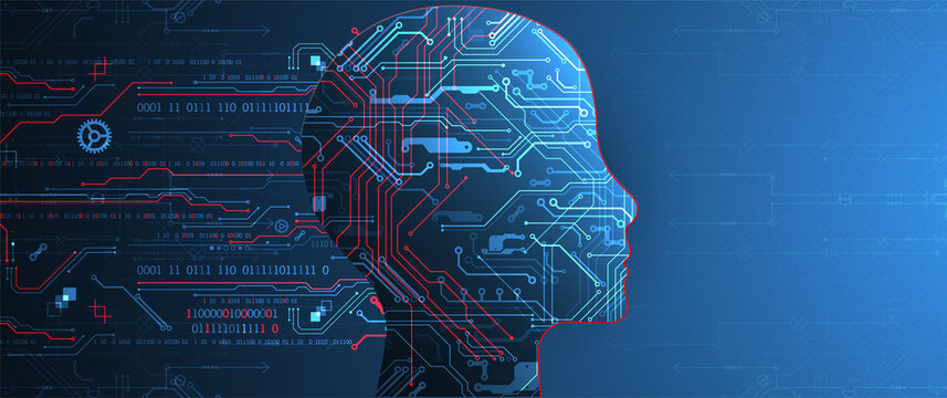 Artificial intelligence (AI) and big data concept. Machine cyber mind.  Technology vector background.