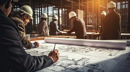 Architects and engineers carry out on-site inspections, ensuring the synergy of creativity and technical proficiency in every detail. Generated by AI.
