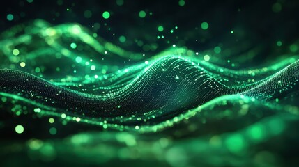 Sustainable Businesses A dynamic, abstract canvas of swirling green lines and pulsating dots, symbolizing the interconnectedness of big data, technological advancements, and the vast reach of the