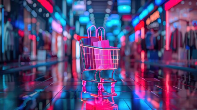 A robotic hand holding fresh produce in a supermarket aisle.  This image represents the future of technology in grocery shopping.