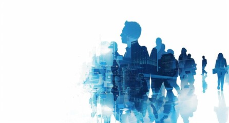 A double exposure illustration of business people in silhouette with digital elements, representing the integration and use of technology for data visualization within corporate Generative AI
