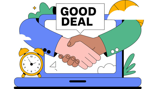 Find online deals business partnership handshake concept vector illustration agreement meeting deal done editable stock vector illustration